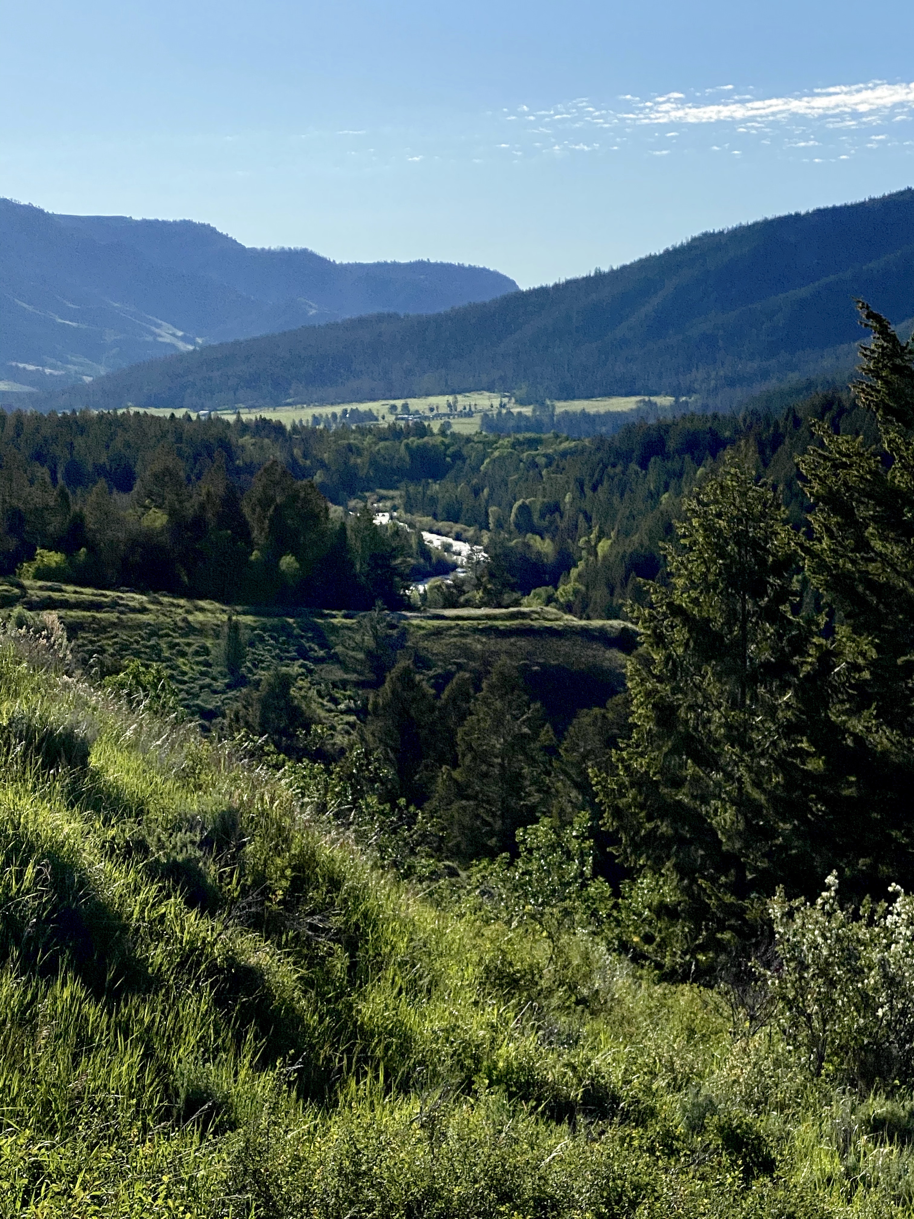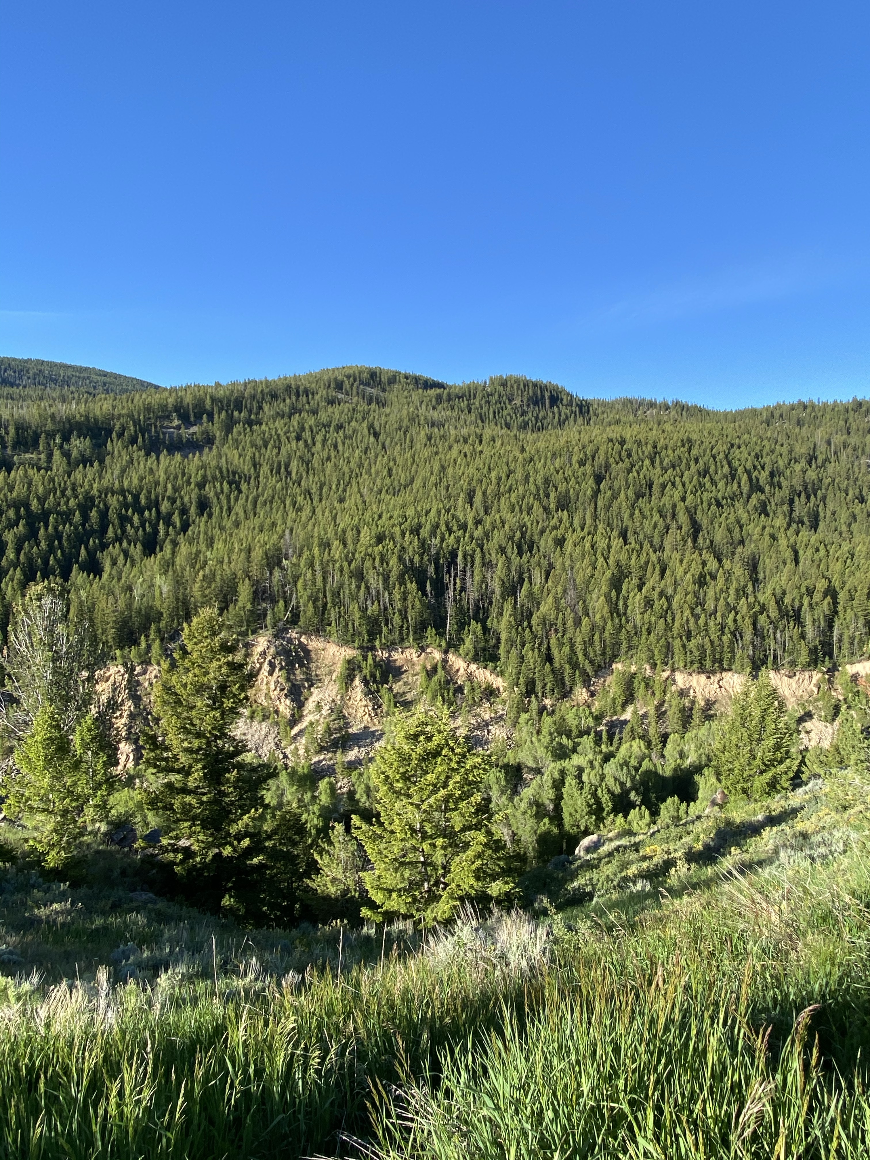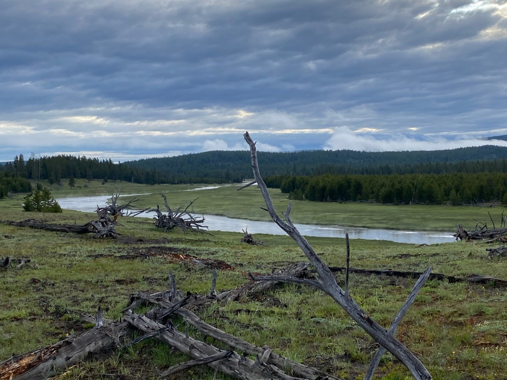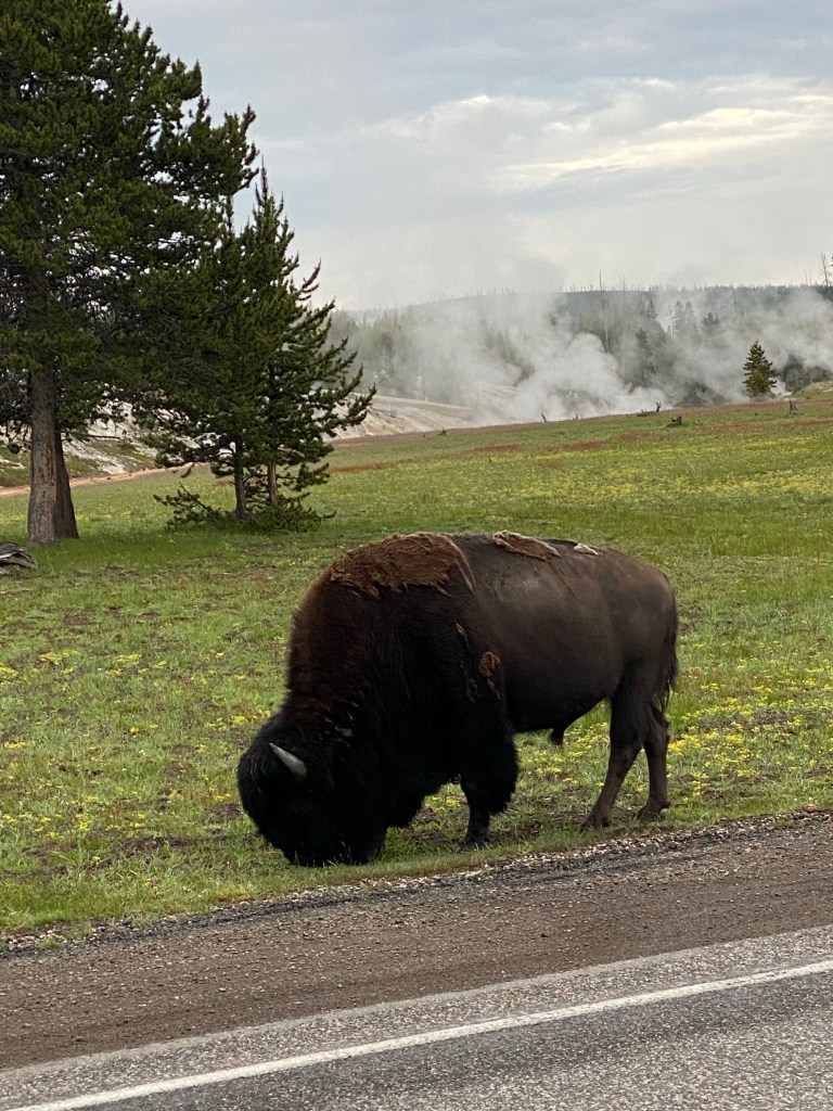 Another marvelous day in Yellowstone. Started the day with an 8-mile bike ride on a gravel road inside the park. I did have one small mishap with a bison that I accidentally startled. I swear he was hiding behind a tree. He gave me a snort and I backed up quickly. He would not move off the trail, so had to go around.