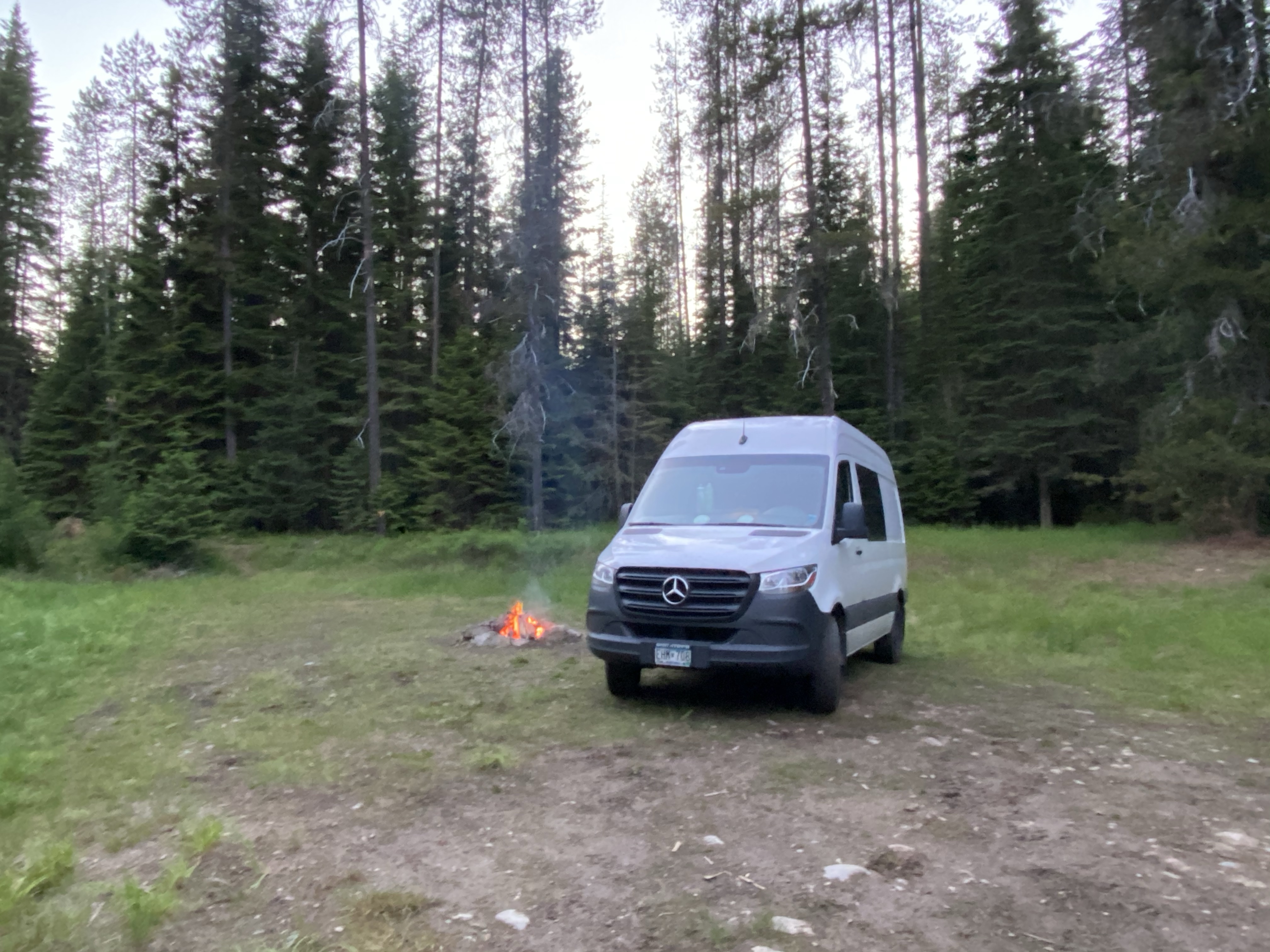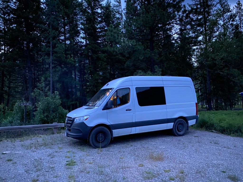In for the night at a Big Creek campground in the National Forest outside of Glacier National Park
