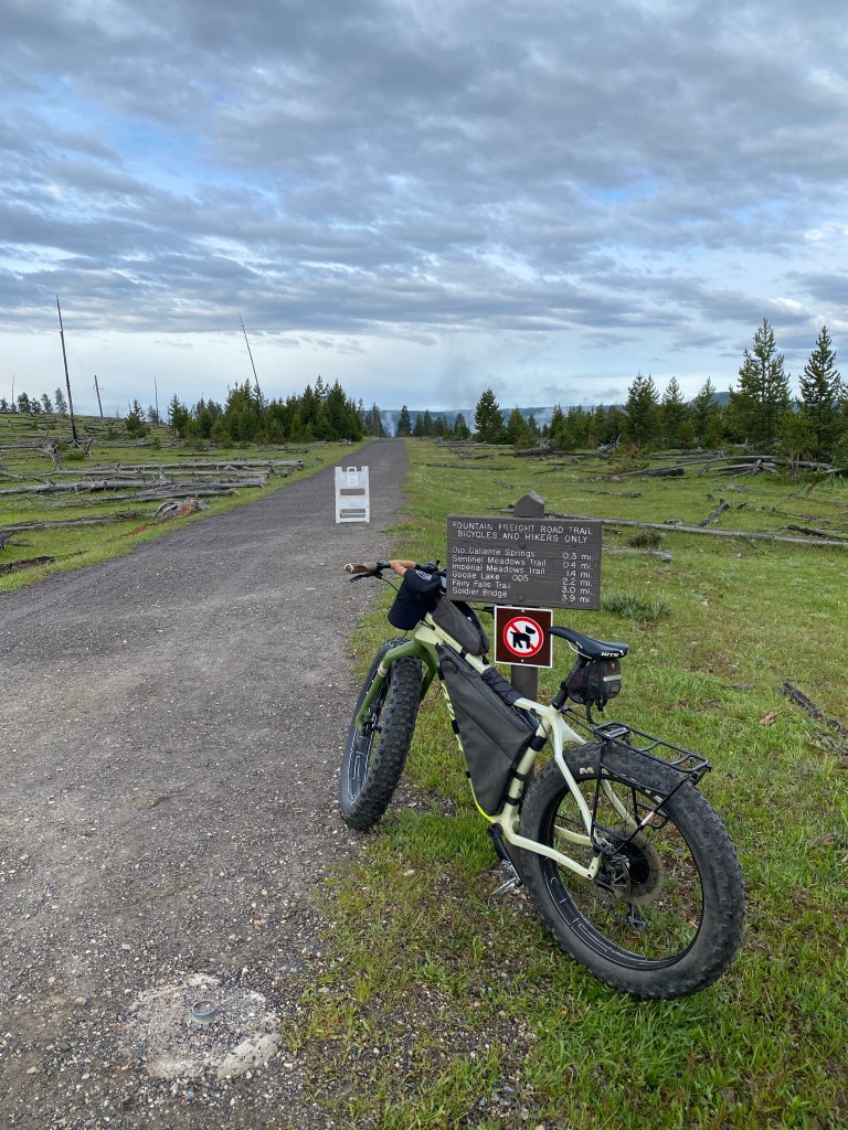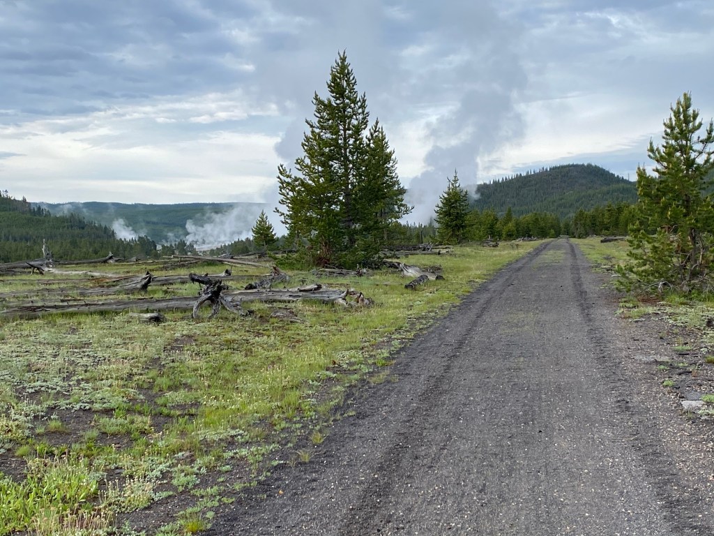 BisonGravel road in Yellowstone – morning bike rideYellowstone Bike Route